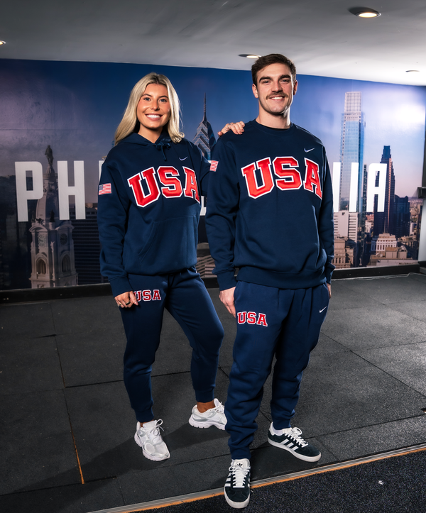 The USA Collection features sewn double-twill USA lettering and tops with a precision-embroidered American flag—never screen printed. Built on genuine Nike garments and sewn in Pennsylvania, it’s premium apparel for those who know the difference. Each order has free U.S. shipping and easy returns.
